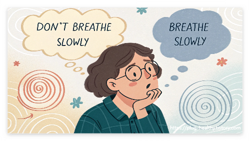 심호흡을 하면서 천천히 숨을 들이마시고 내쉬기