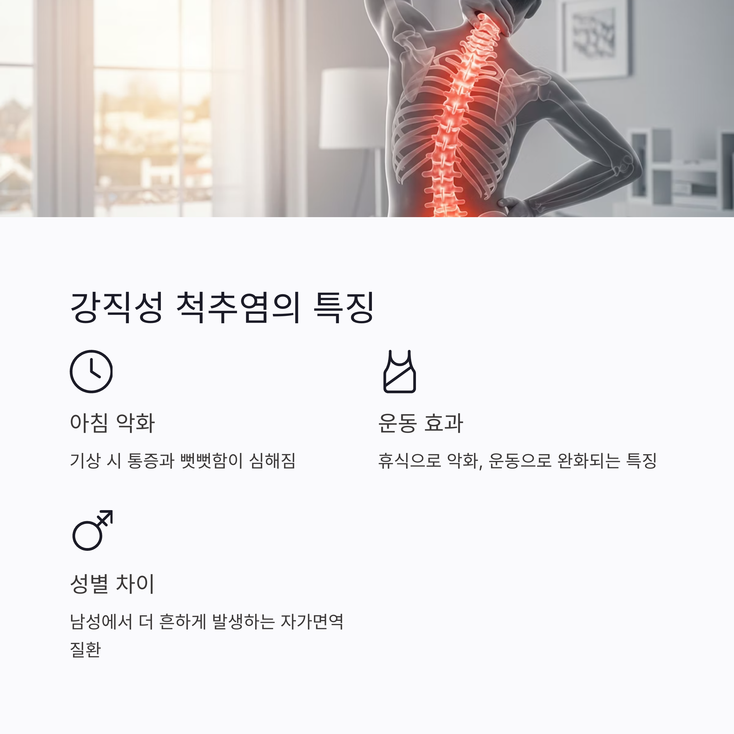 이 질환은 주로 척추와 천장관절에 염증을 일으키며