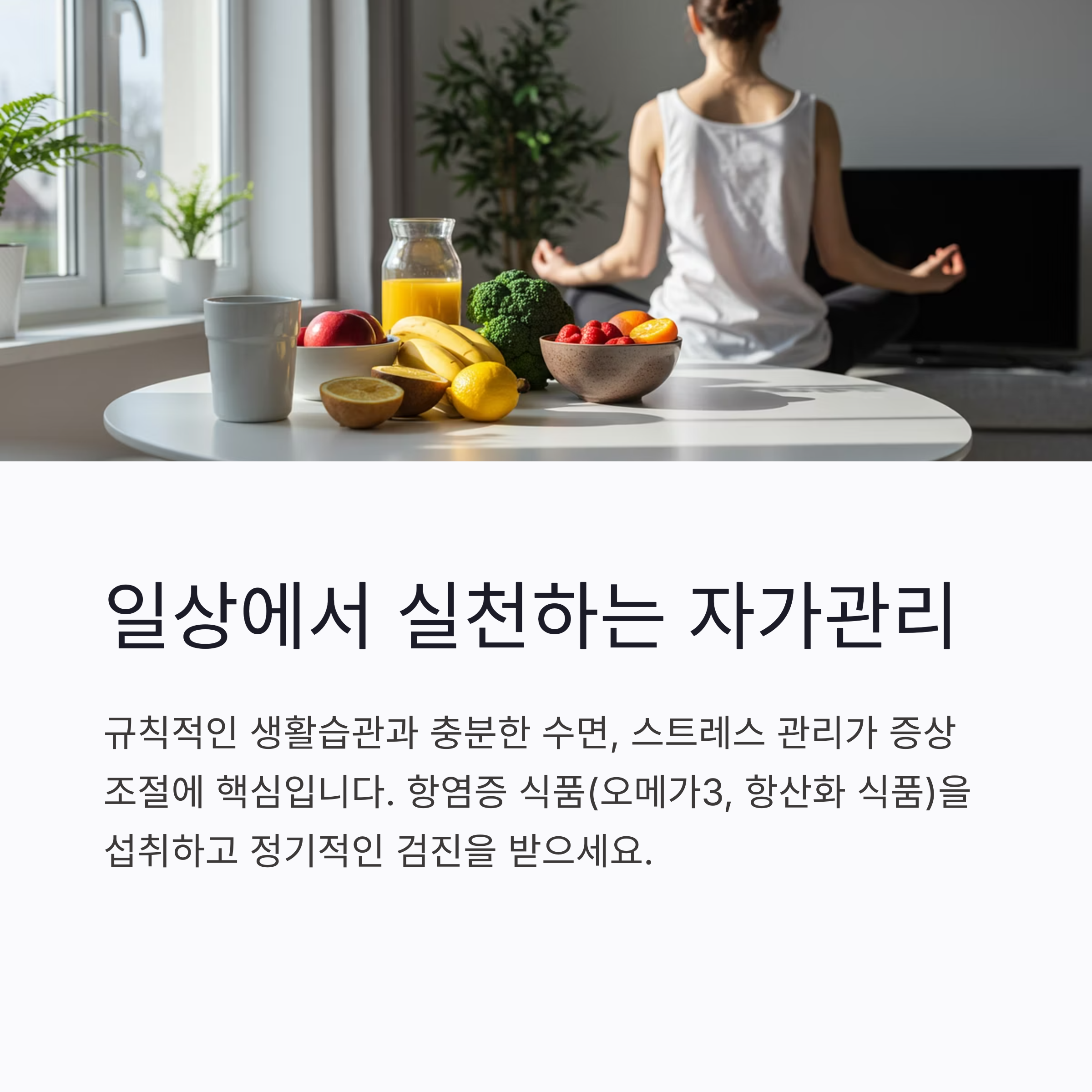 규칙적인 수면, 균형 잡힌 식단, 스트레스 최소화는