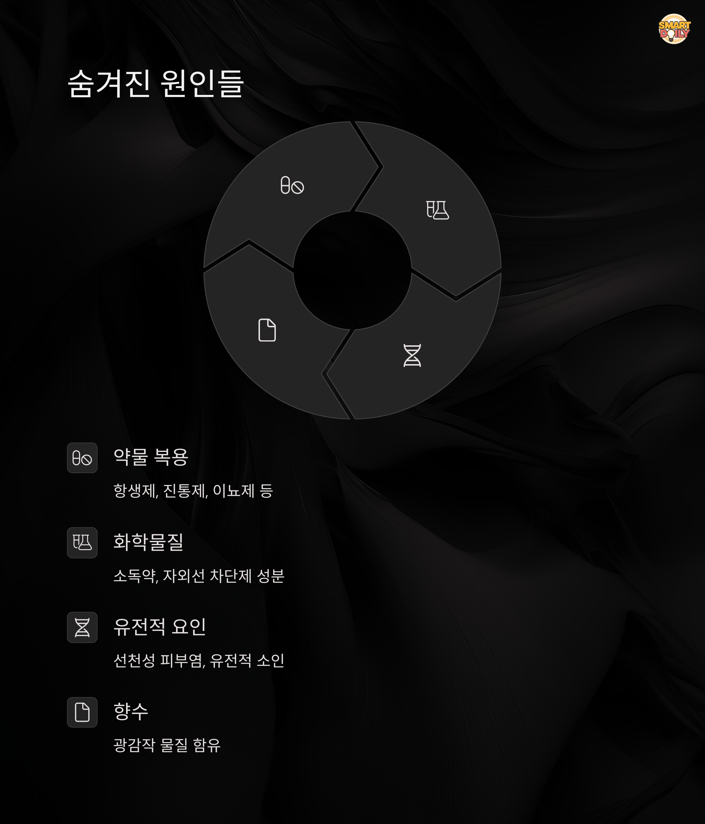 "햇빛과 화학물질이 결합되면 피부에 과민반응이 생길 수 있어요"