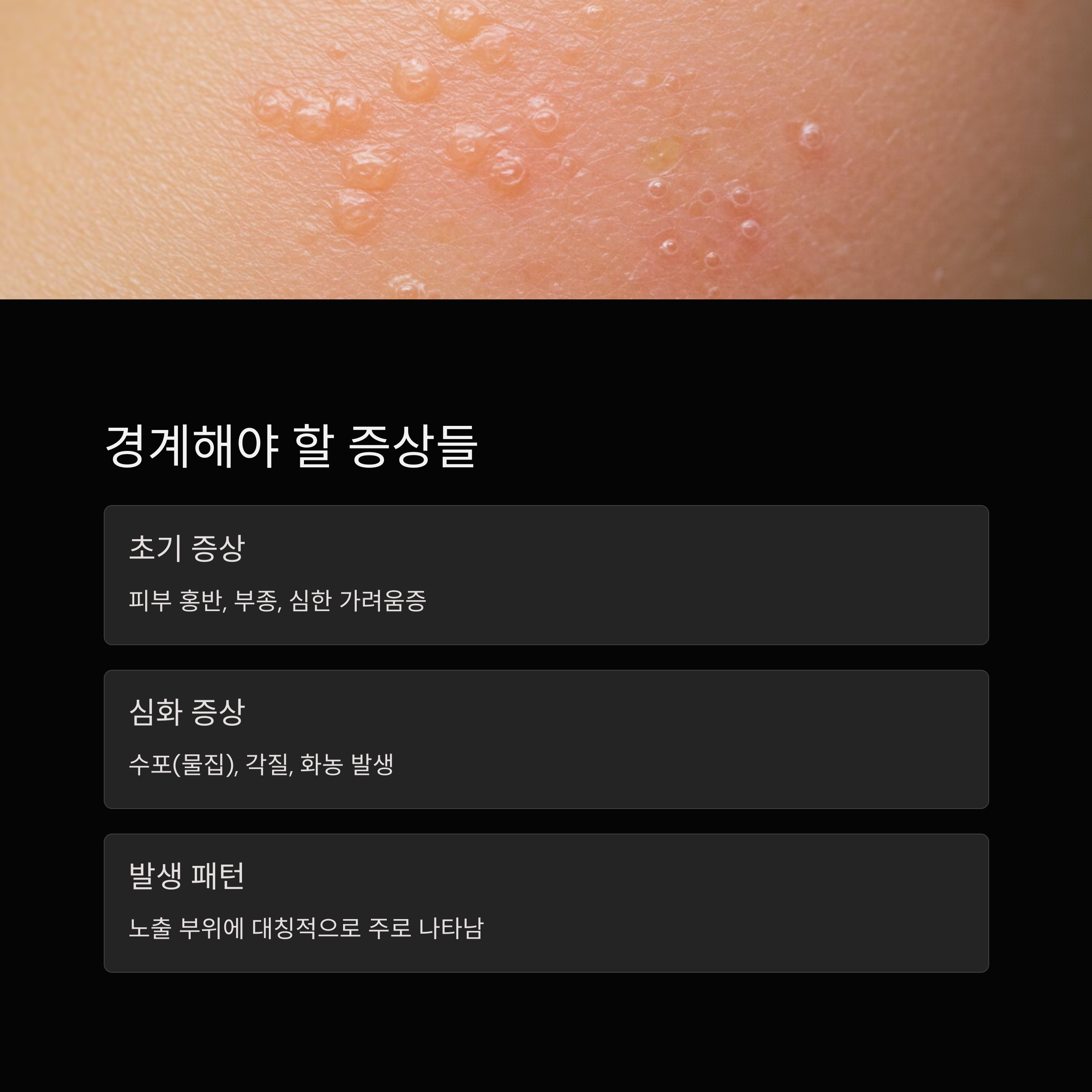 "노출 부위에만 발생하고 일정 시간 후 증상이 나타나는 패턴이 핵심"