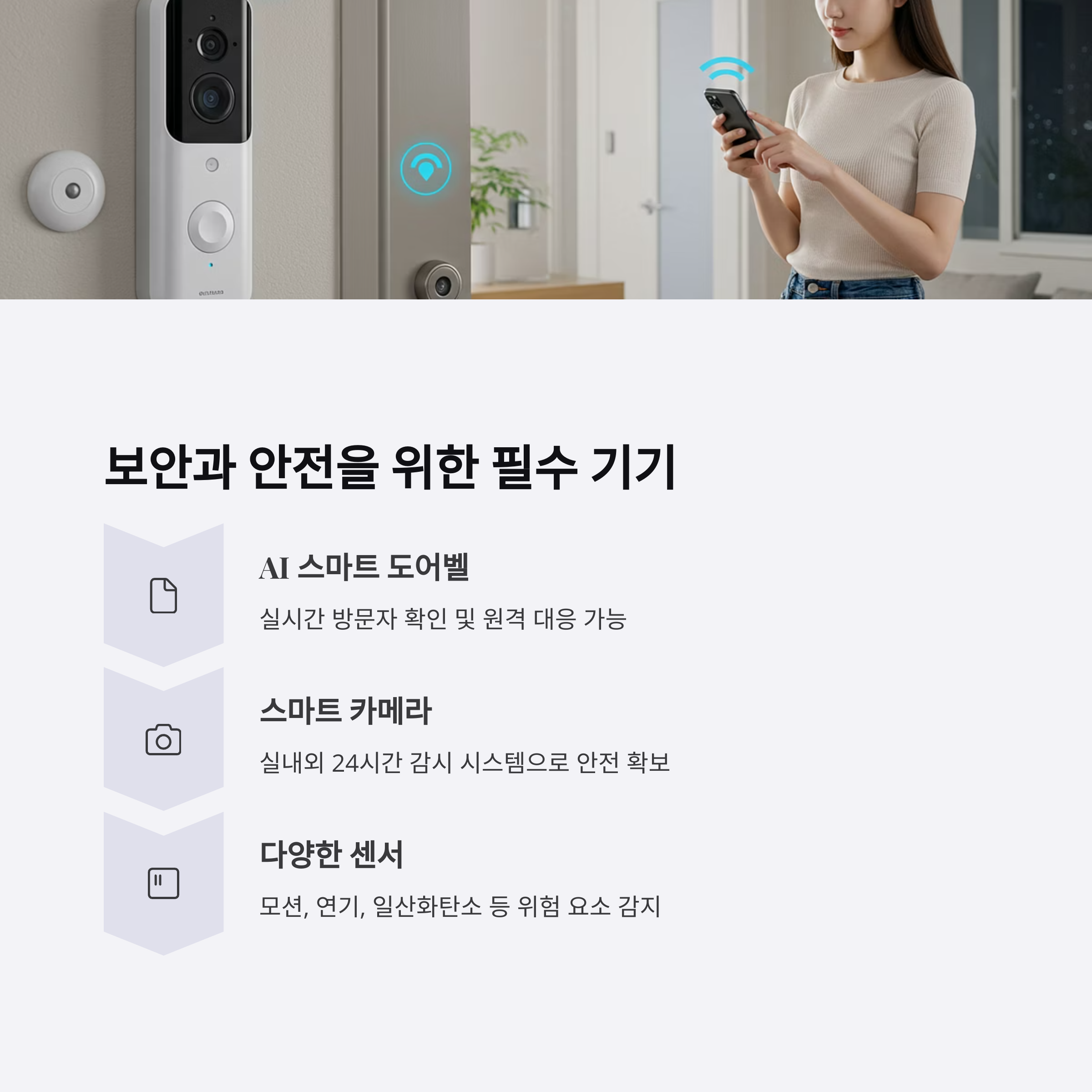 보안과 안전을 위한 필수 기기 - 도어벨, 카메라, 센서