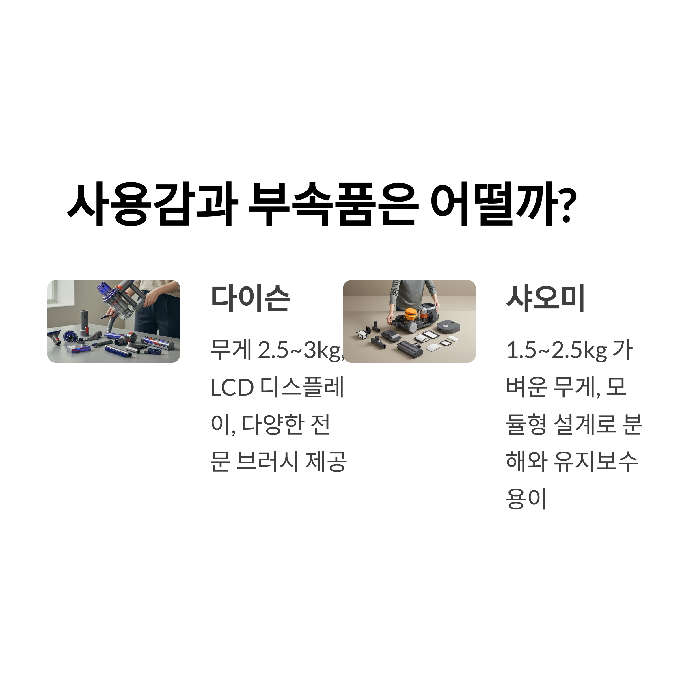 - 다이슨은 정밀 청소와 고급 기능까지 포함된 프리미엄 제품