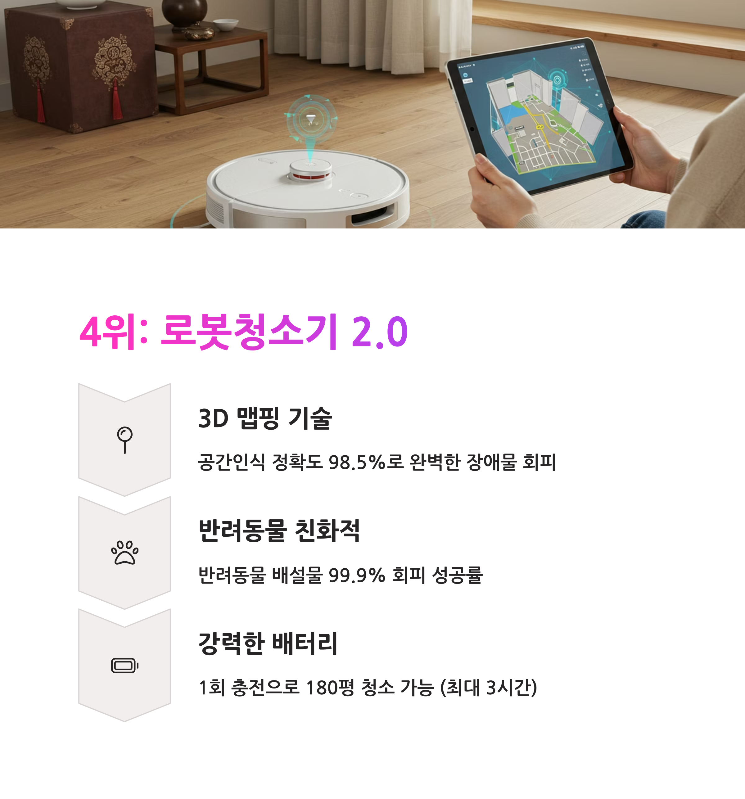 4위 - 로봇청소기 2.0: AI 맵핑과 자율청소의 진화