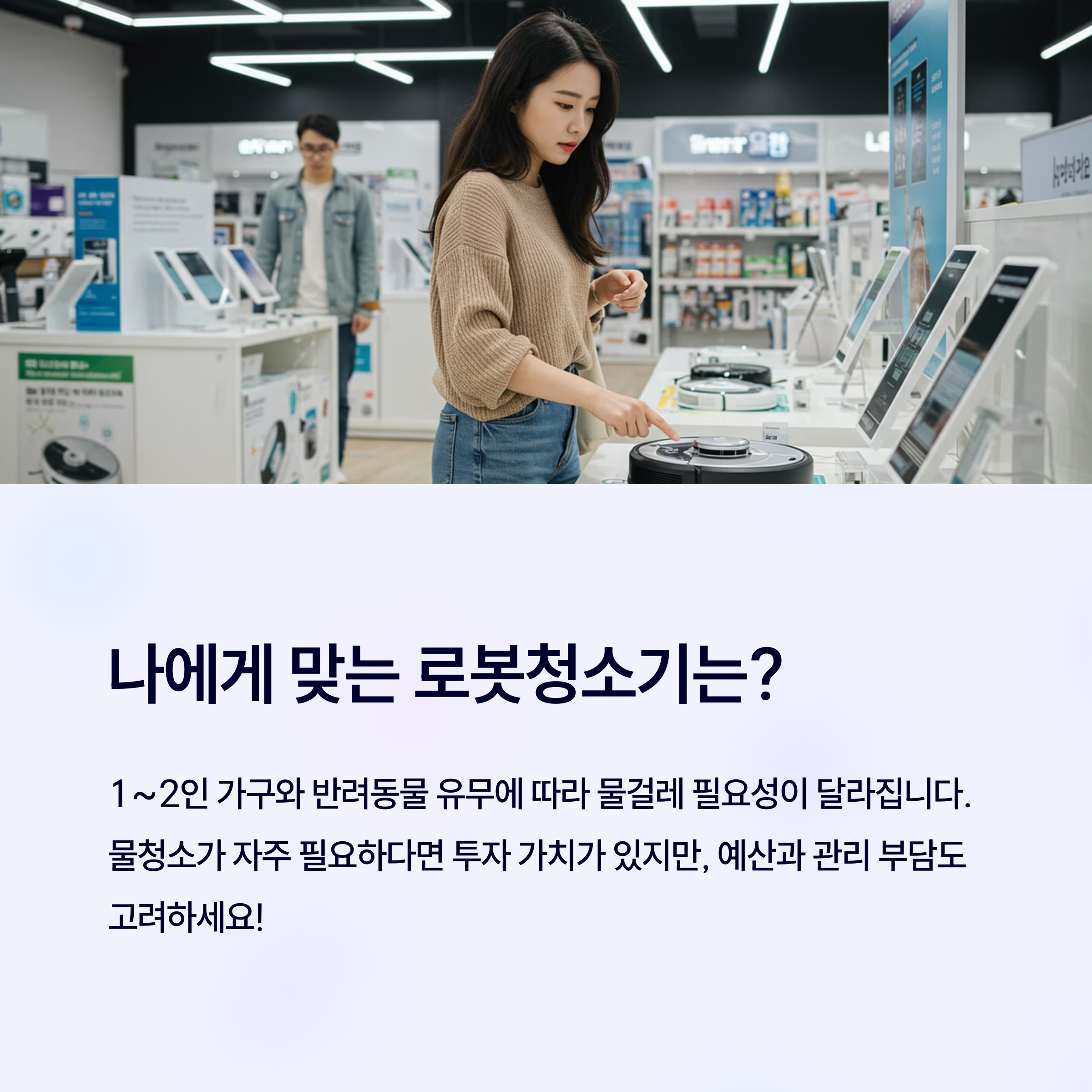 - 고급형은 물걸레 기능이 정교하지만 가격 상승도 감안