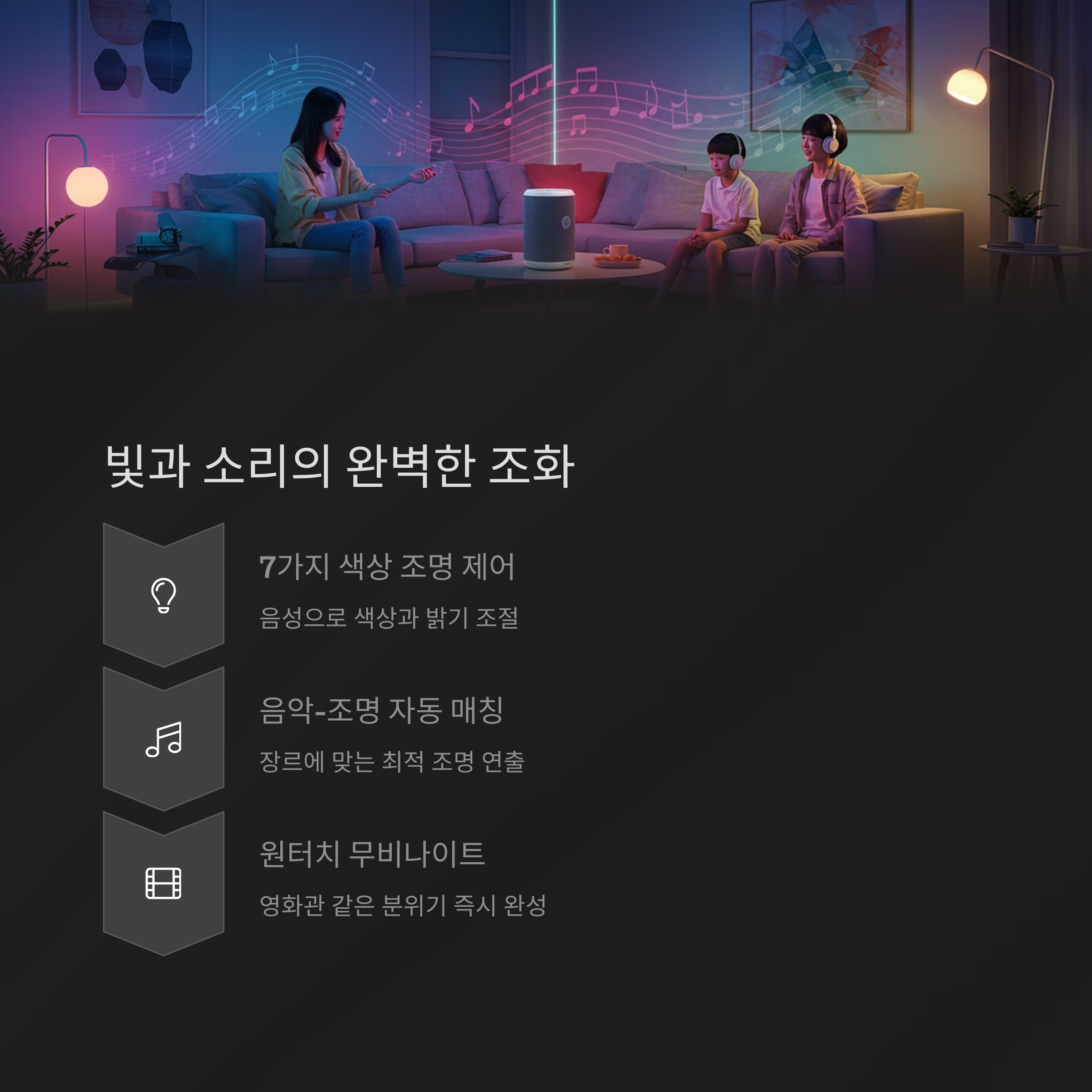 말 한마디로 빛과 소리의 무드 세팅이 가능합니다.