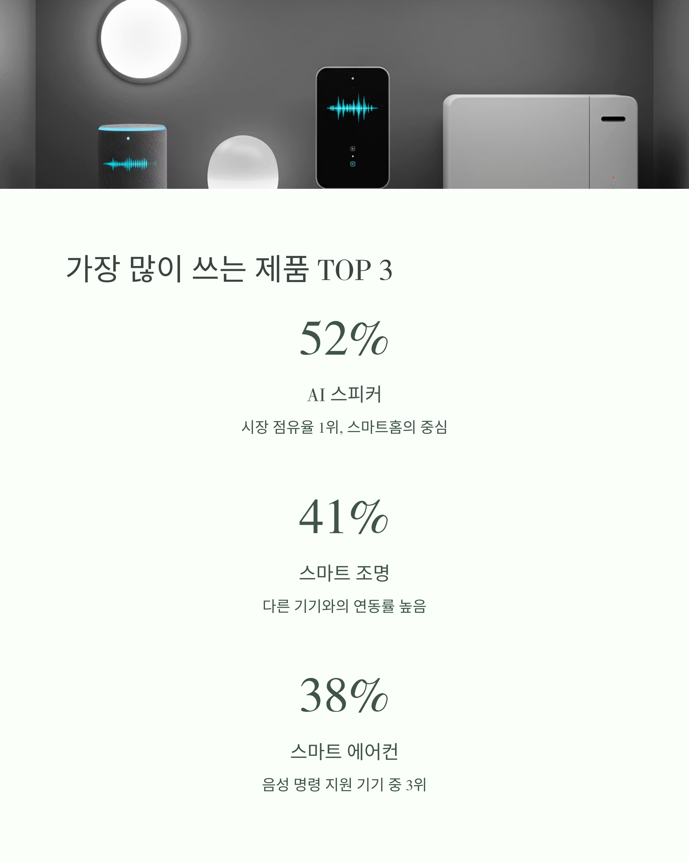 가장 많이 쓰는 제품 TOP 3 - 스피커, 조명, 에어컨