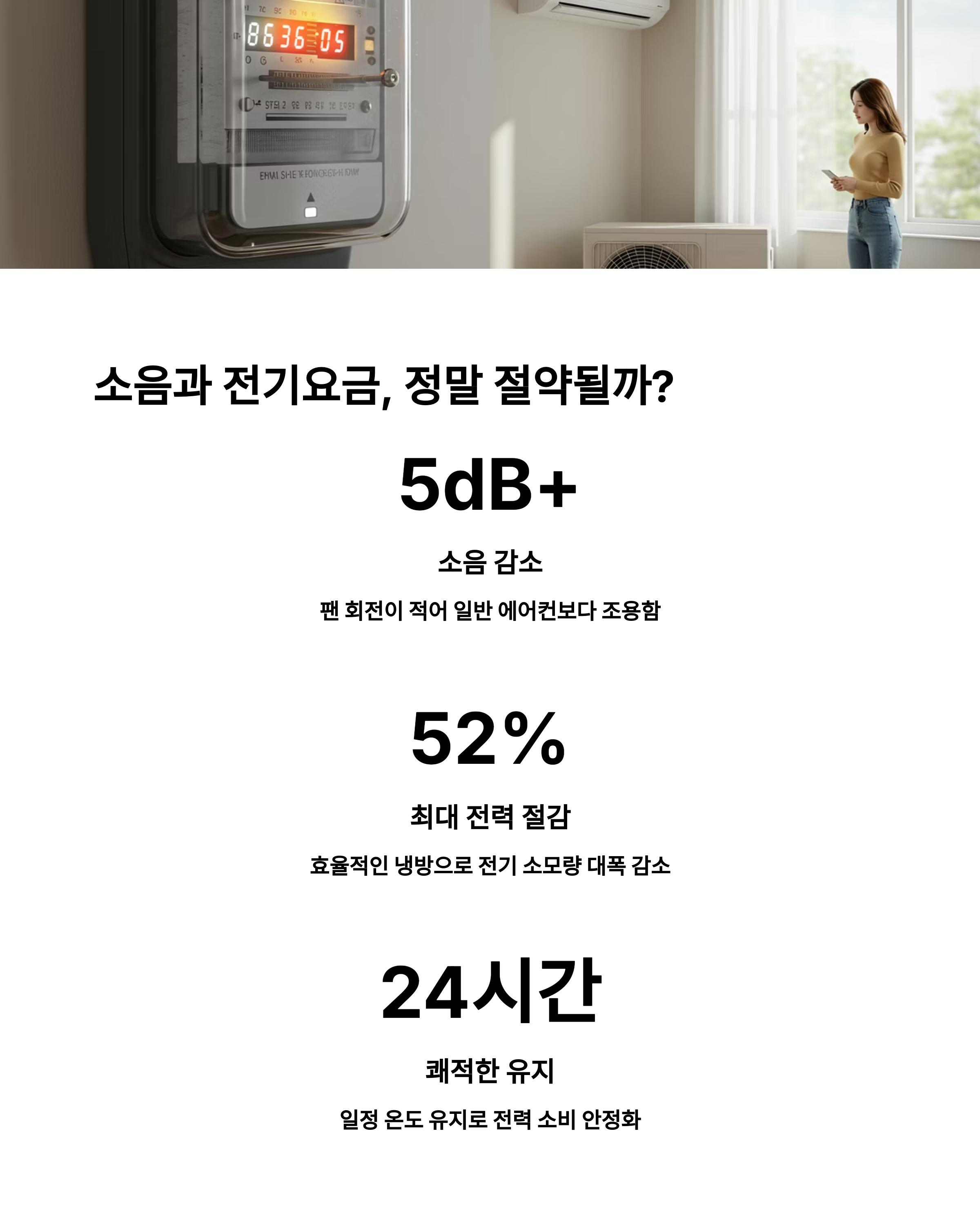 특히 장시간 작동 시 전기요금 부담이 적고 조용한 냉방이 가능합니다
