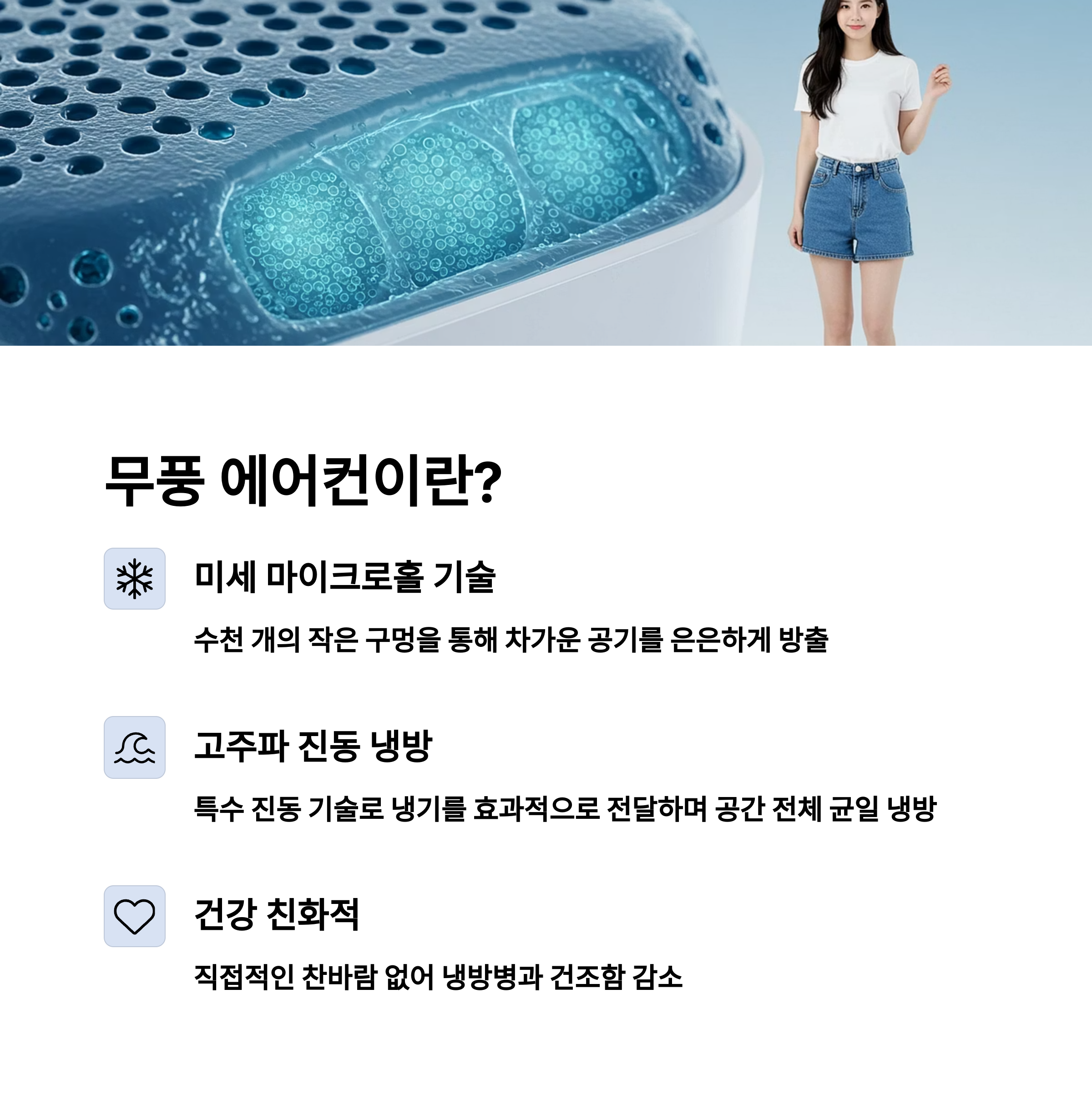 무풍 에어컨은 직접적인 바람 없이도 실내 온도를 낮춰주는 제품입니다