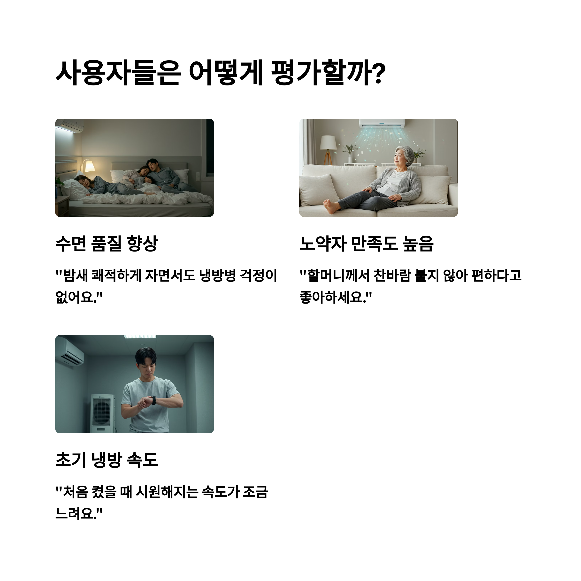 소음, 피부 건조, 냉방병을 줄이는 점에서 긍정적 반응이 많습니다