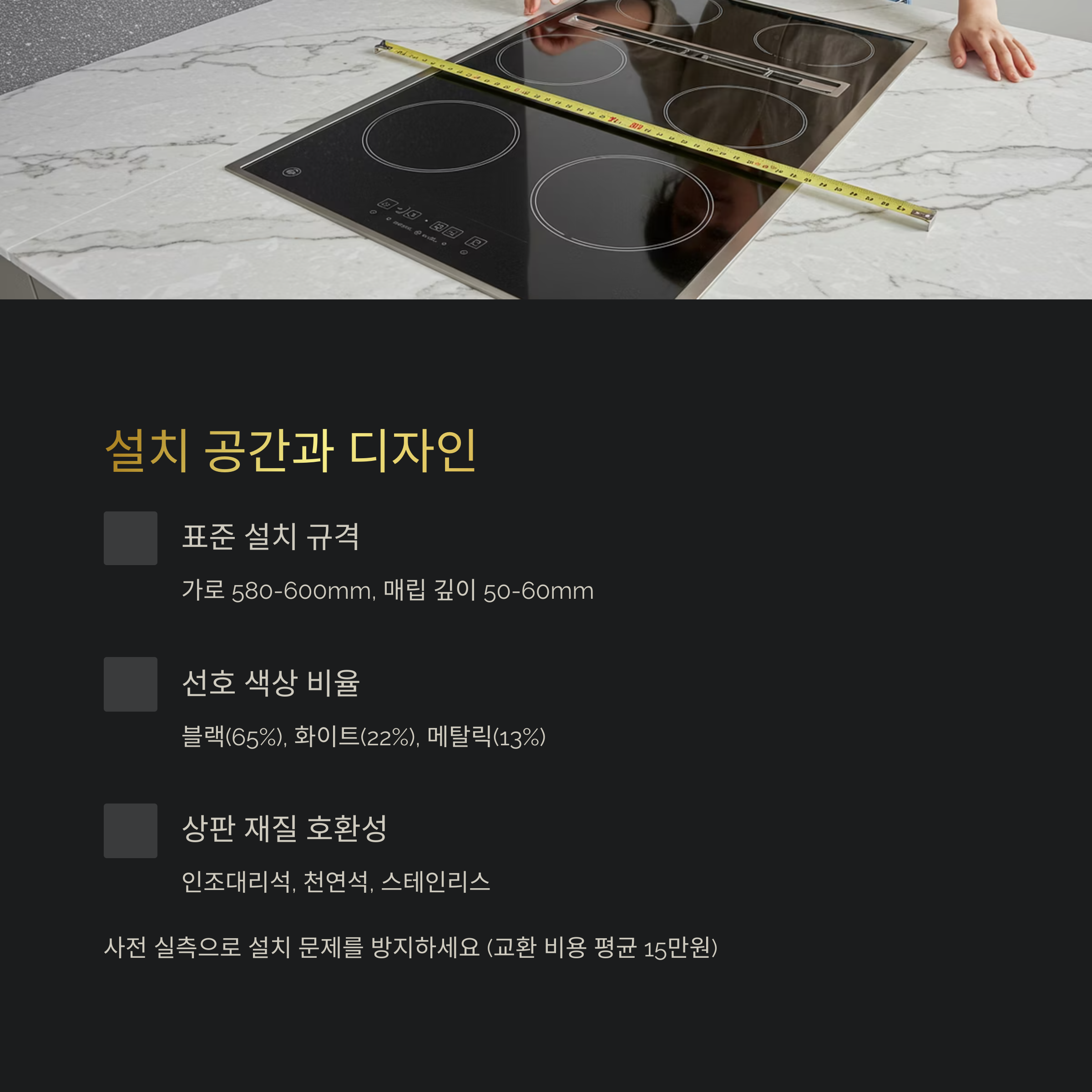 상판 두께, 싱크대 재질, 환기 위치까지 미리 체크해야 하고