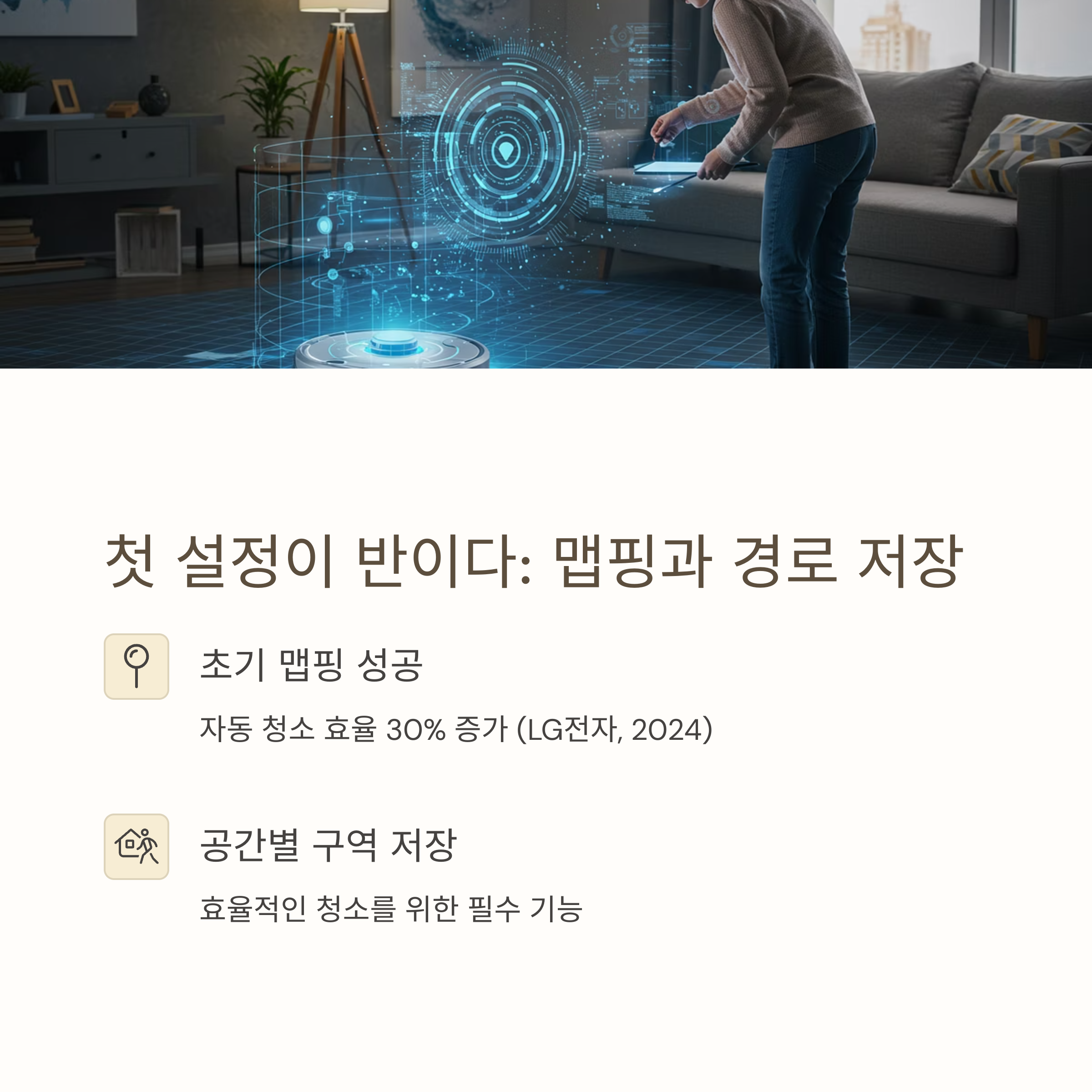 로봇청소기의 첫 사용 시 정확한 맵핑과 경로 저장은 매우 중요합니다.