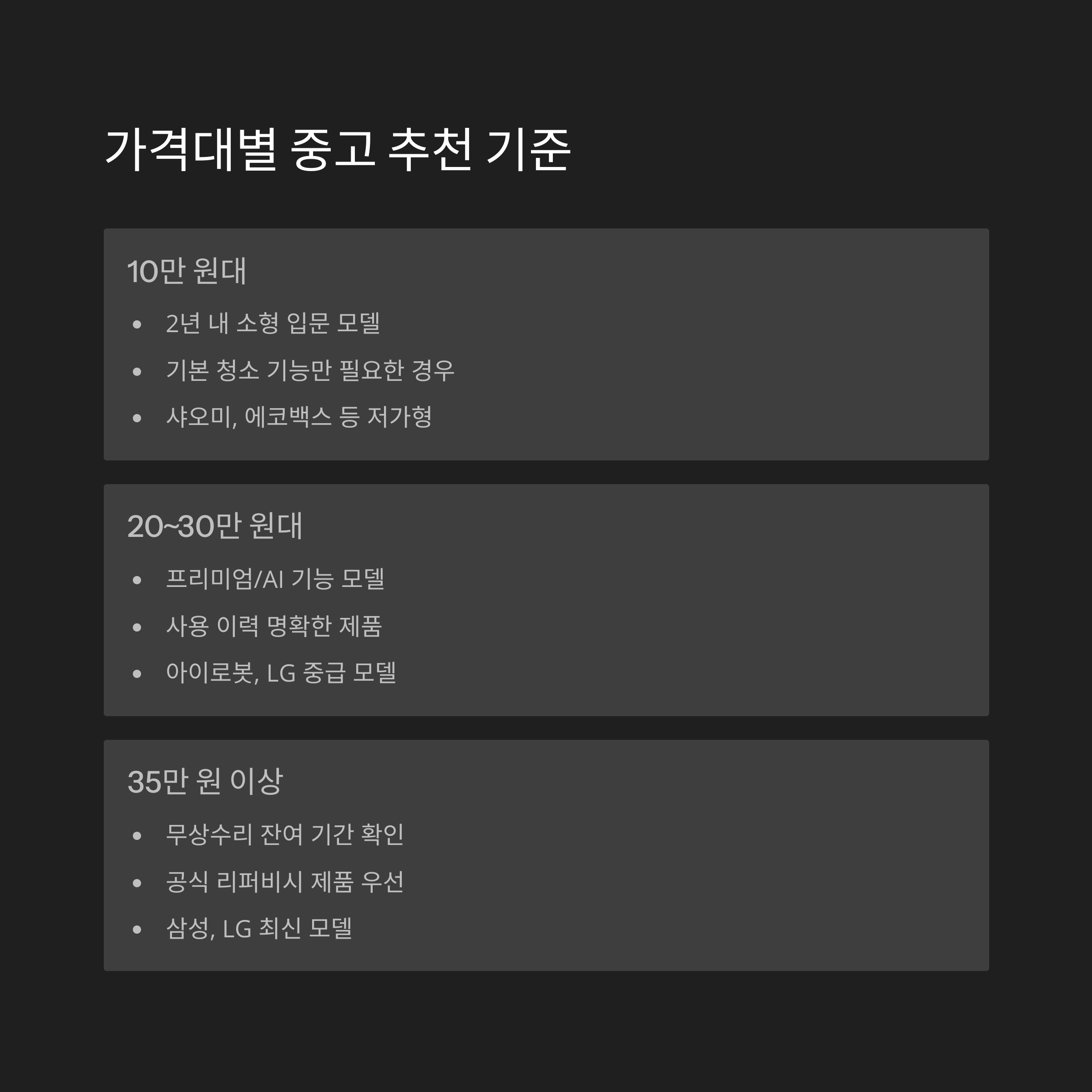 가격대별 중고 추천 기준