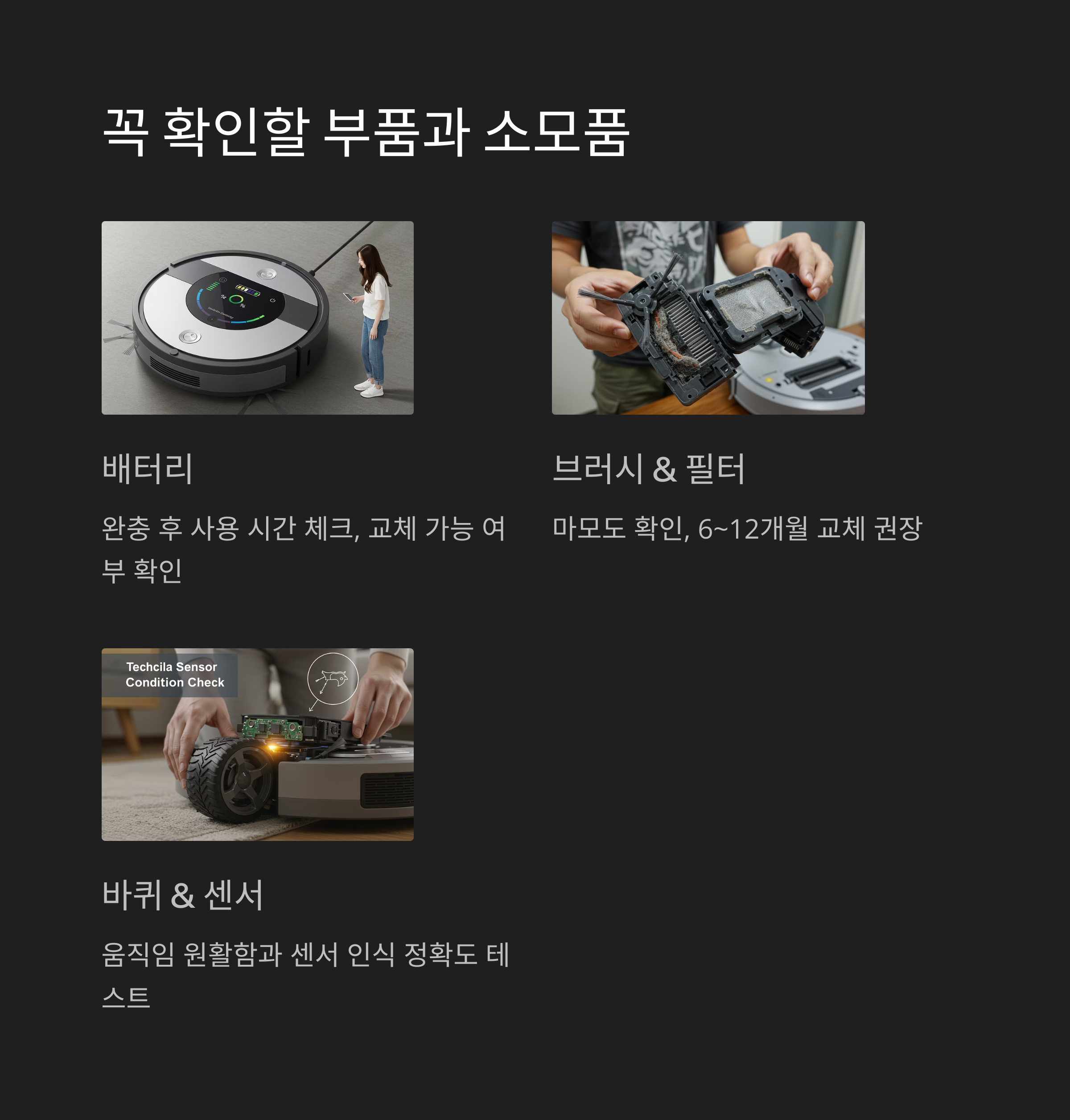 배터리, 브러시, 필터 등 소모품 교체 비용을 감안해야 합니다.
