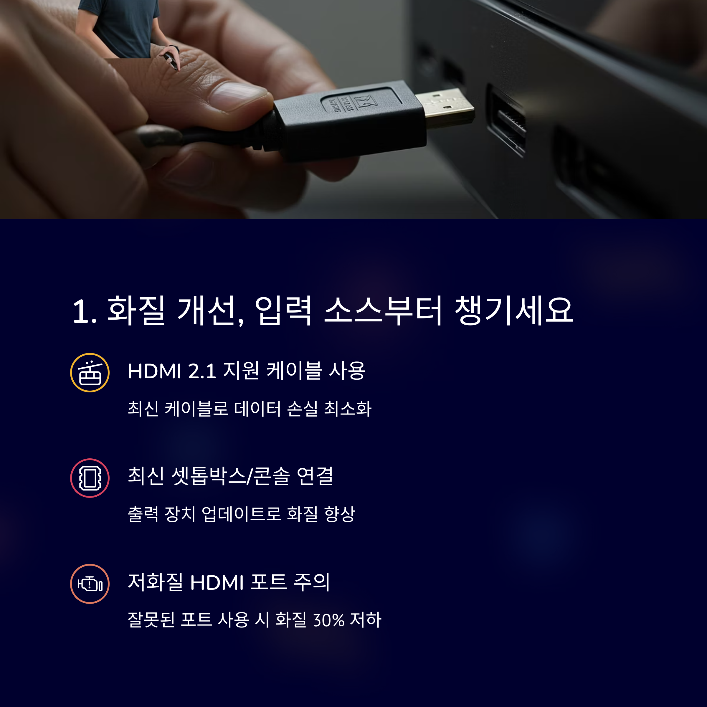 넷플릭스, 유튜브 같은 스트리밍은 화질이 자동 조절되지만, HDMI 연결 기기는