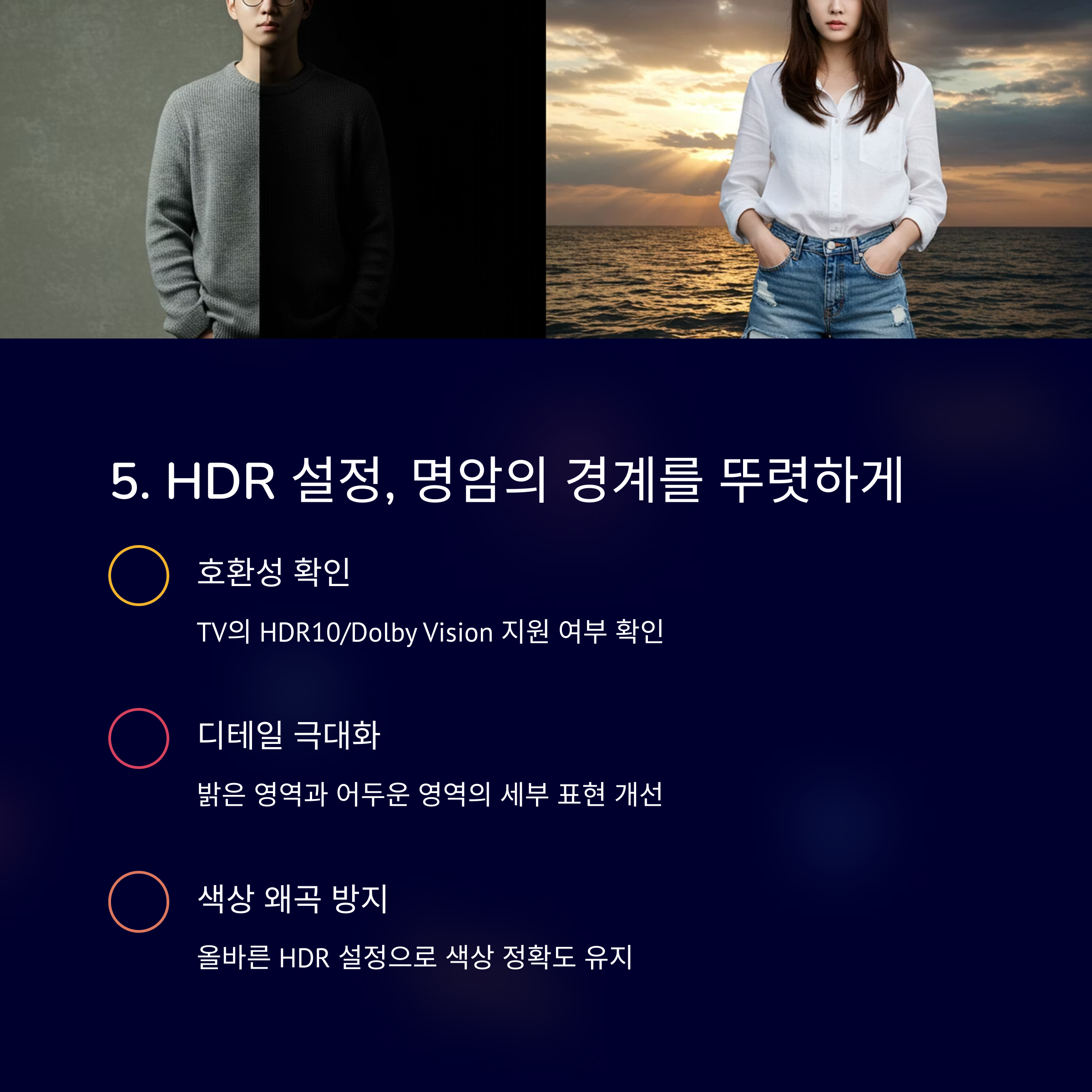 "HDR이 켜졌다면, 화질은 이미 한 단계 업그레이드된 겁니다"