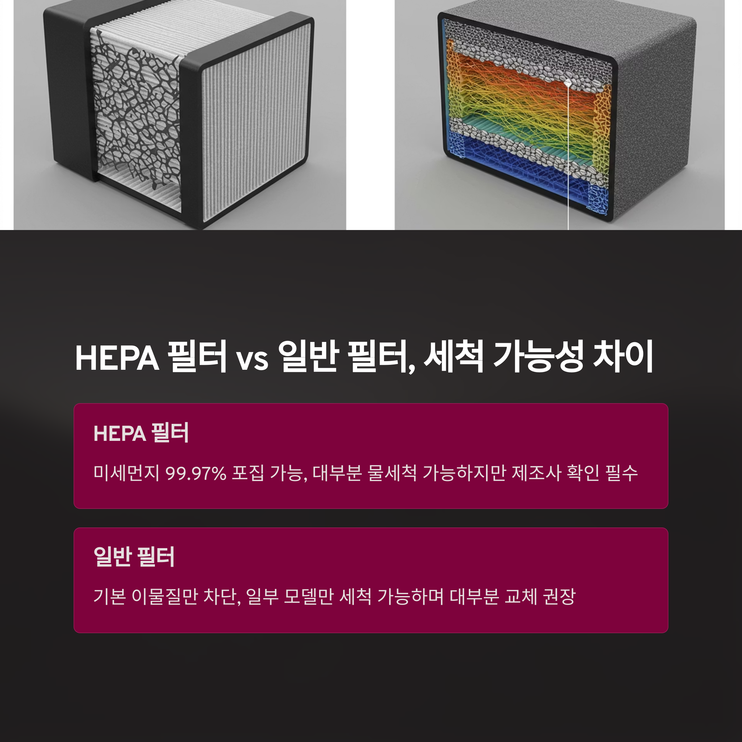 HEPA 필터 vs 일반 필터, 세척 가능 여부 차이