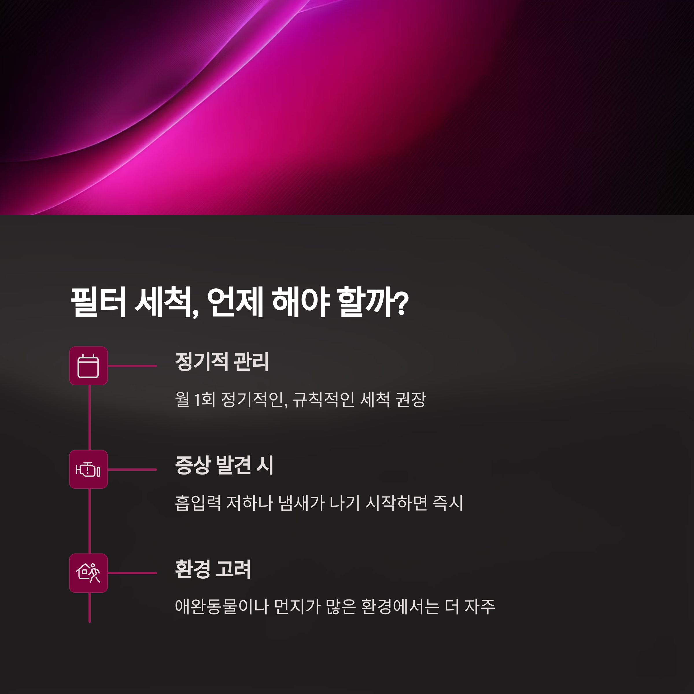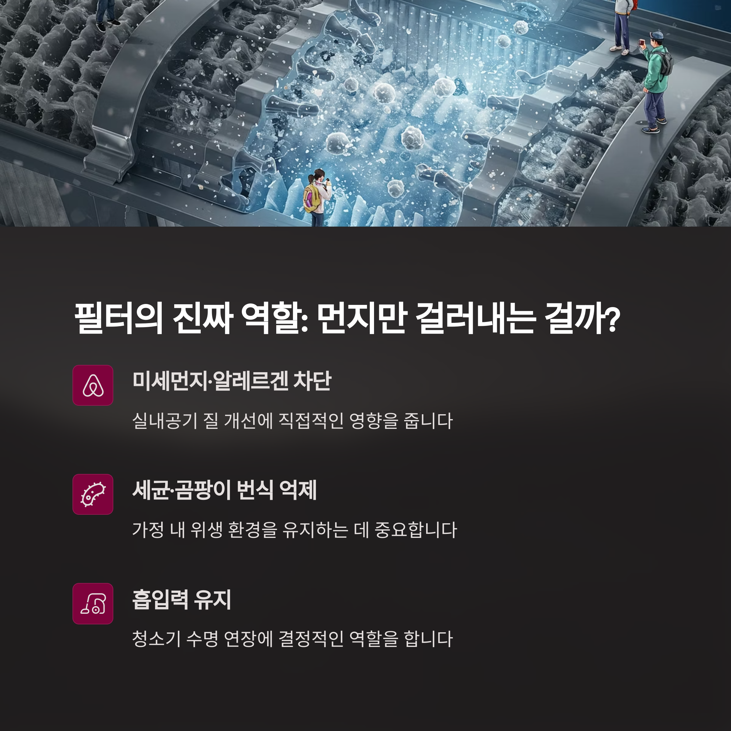 흡입력 유지뿐 아니라, 재비산 방지와 알레르기 예방에도 중요한 역할을 합니다.