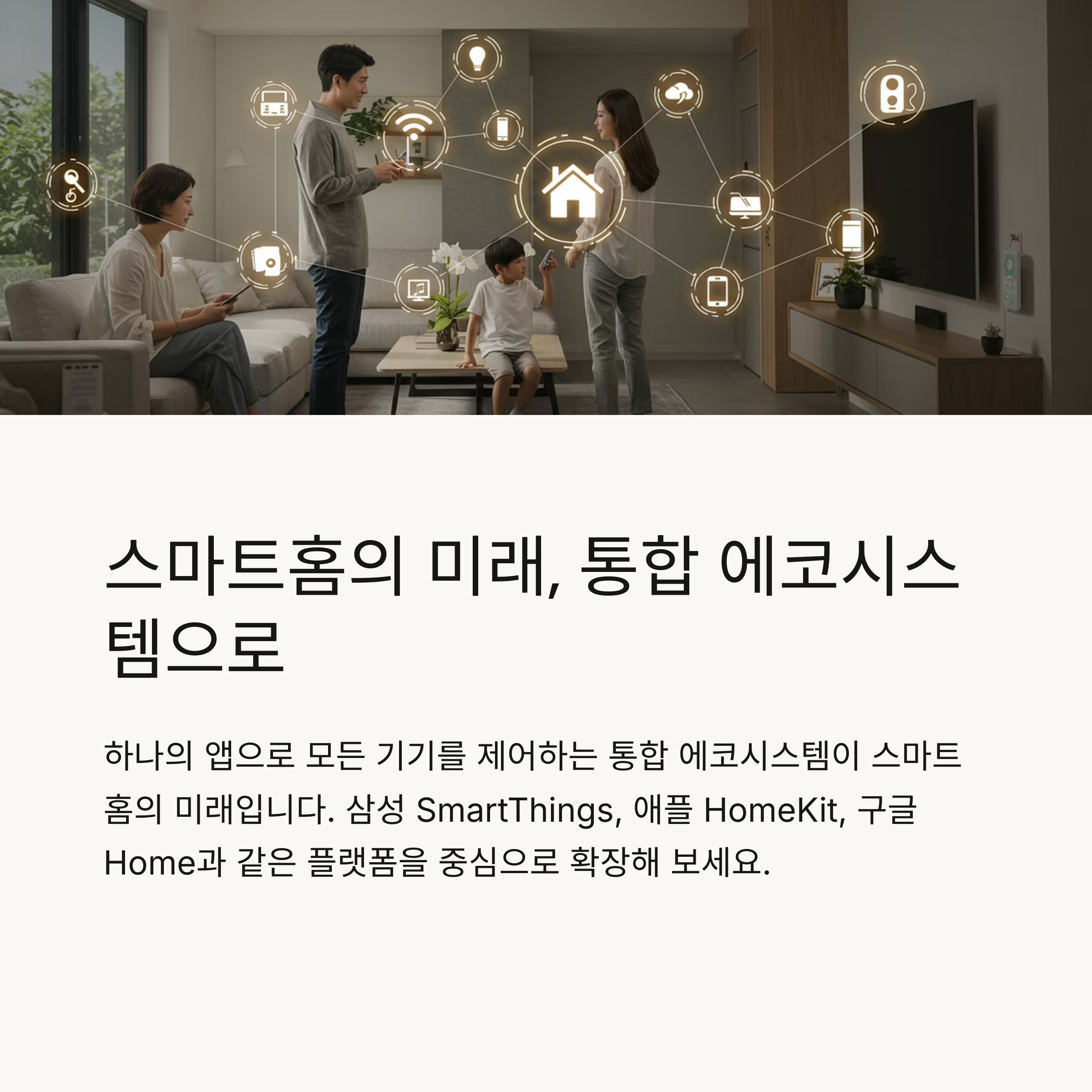 | 삼성 스마트싱스 | 안정된 플랫폼, 가전과의 연동 최적 | 냉장고, 전등, 에어컨 |