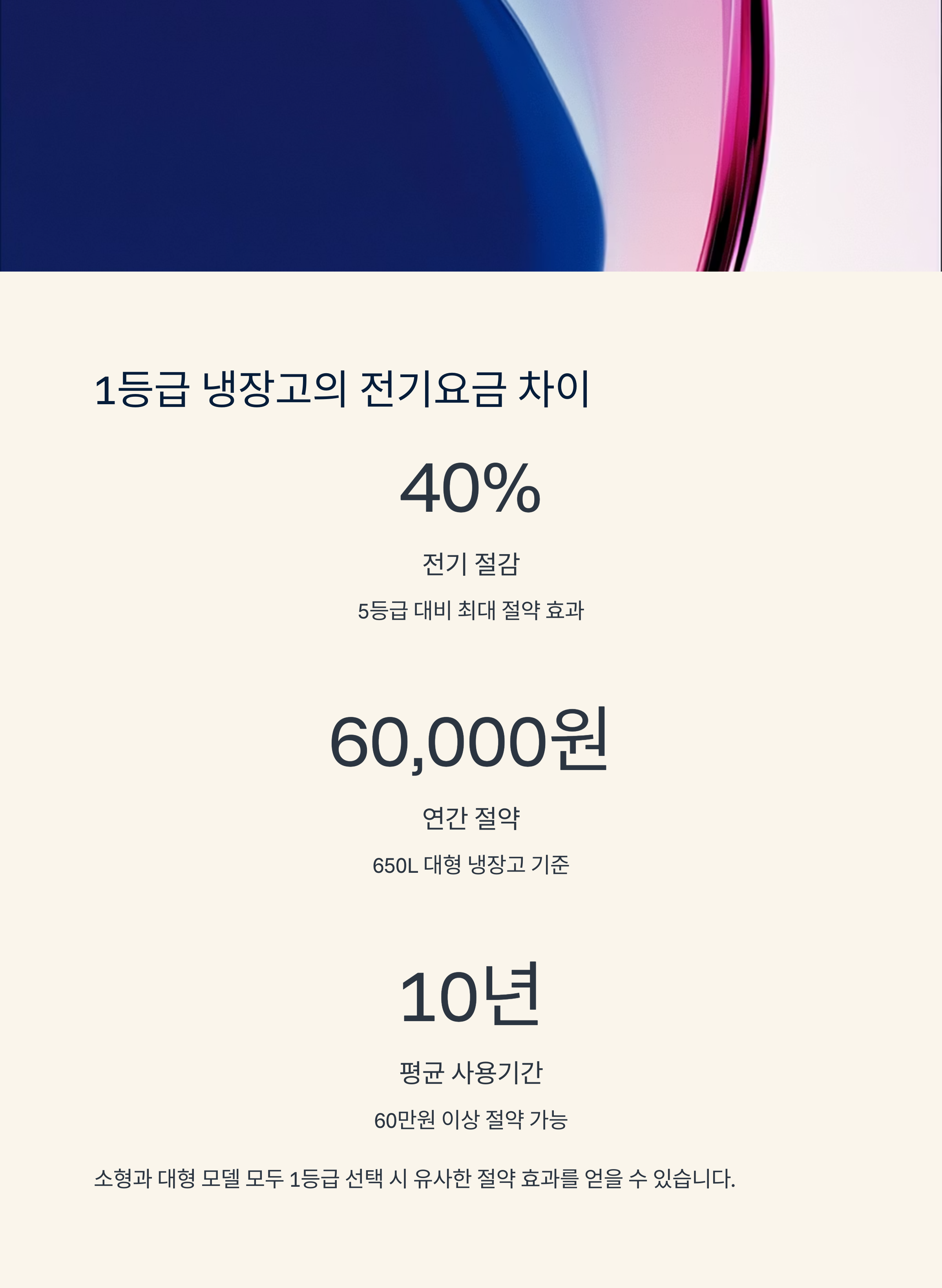 "같은 냉장고라도 등급 차이에 따라 연간 수십 kWh의 차이가 납니다"