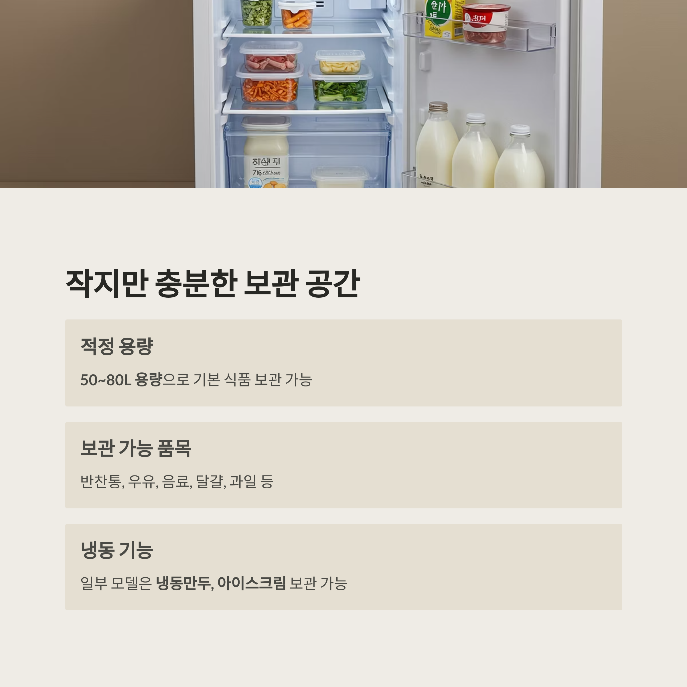 크기는 작지만 꼭 필요한 음식은 충분히 보관