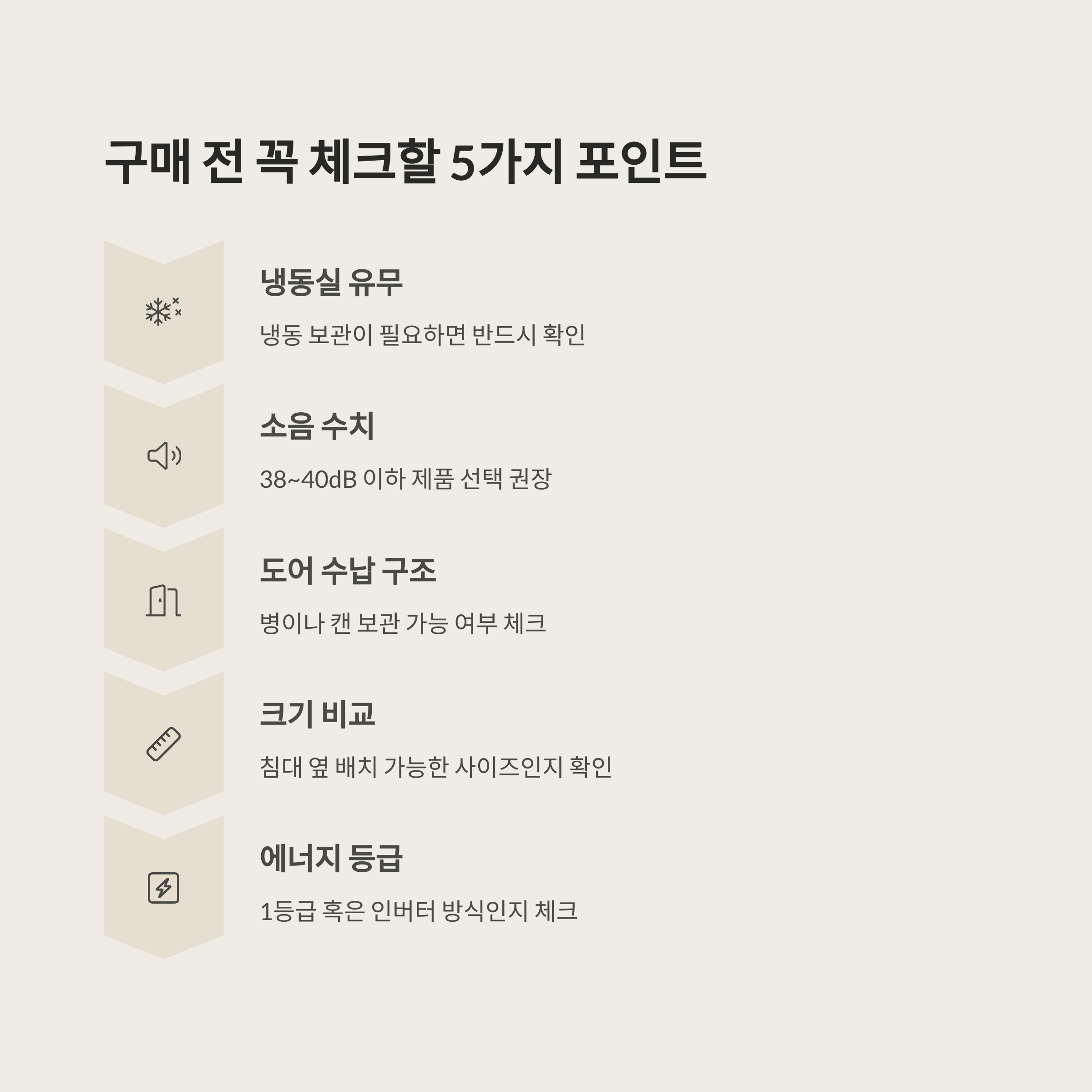 - 에너지 등급: 1등급 혹은 인버터 방식인지 체크