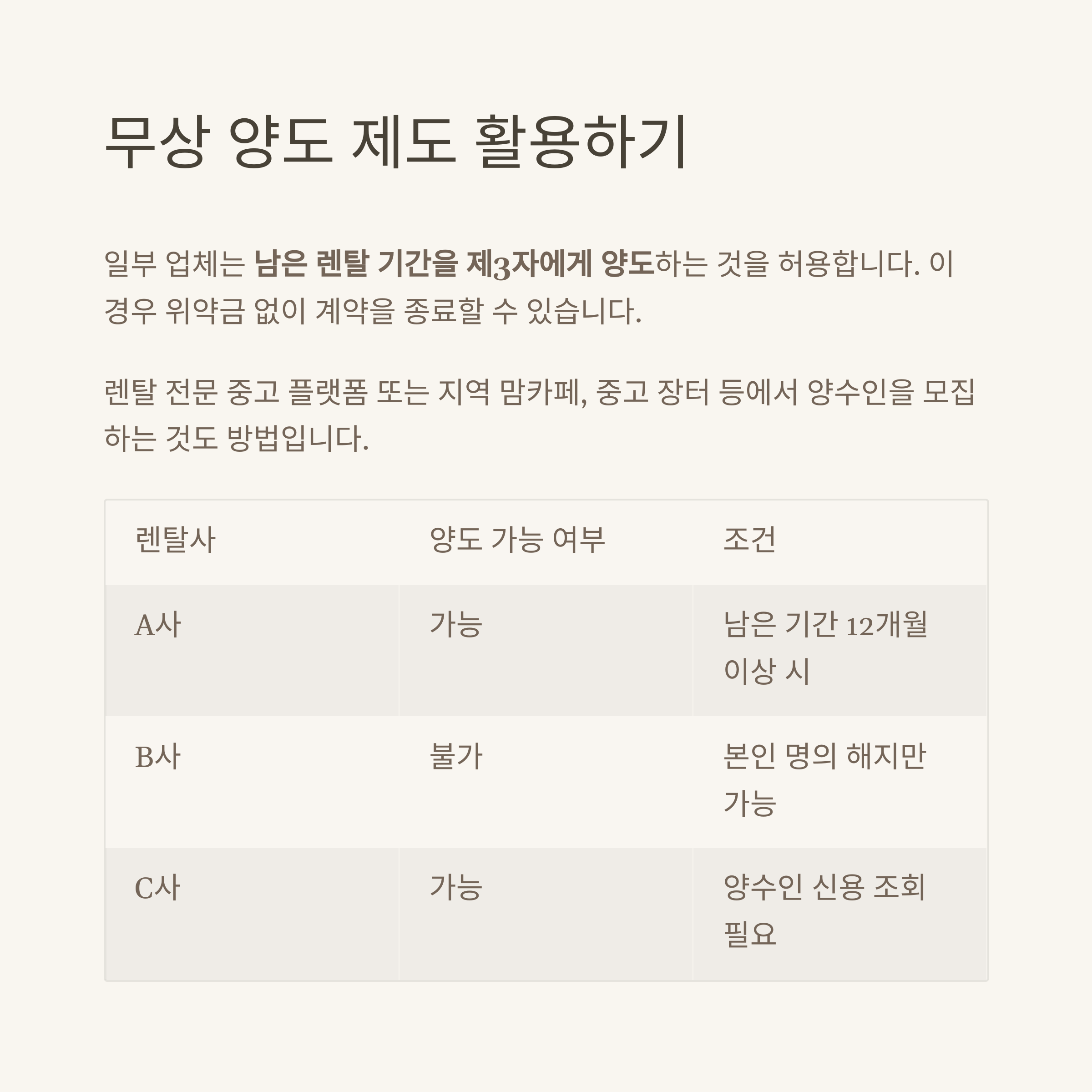 렌탈사 양도 가능 여부 조건