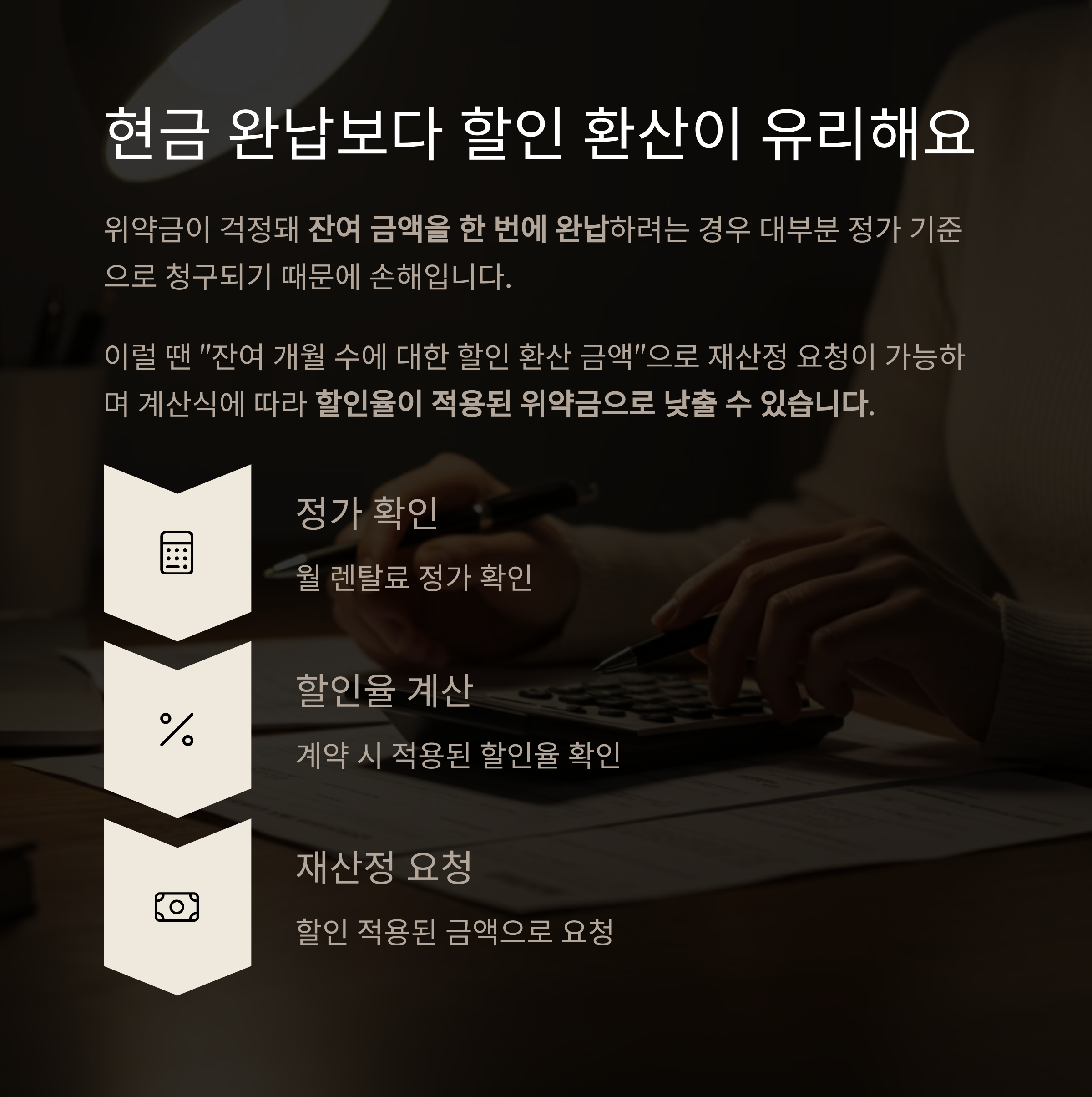 계산식에 따라 할인율이 적용된 위약금으로 낮출 수 있습니다