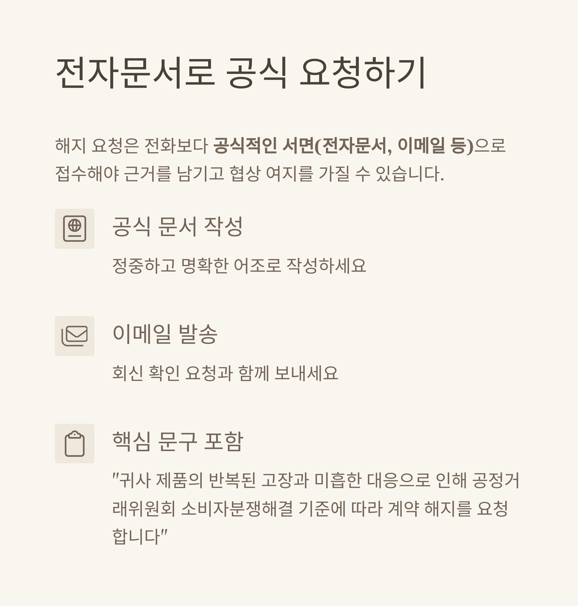 해지 요청은 전화보다 **공식적인 서면(전자문서, 이메일 등)**으로 접수해야