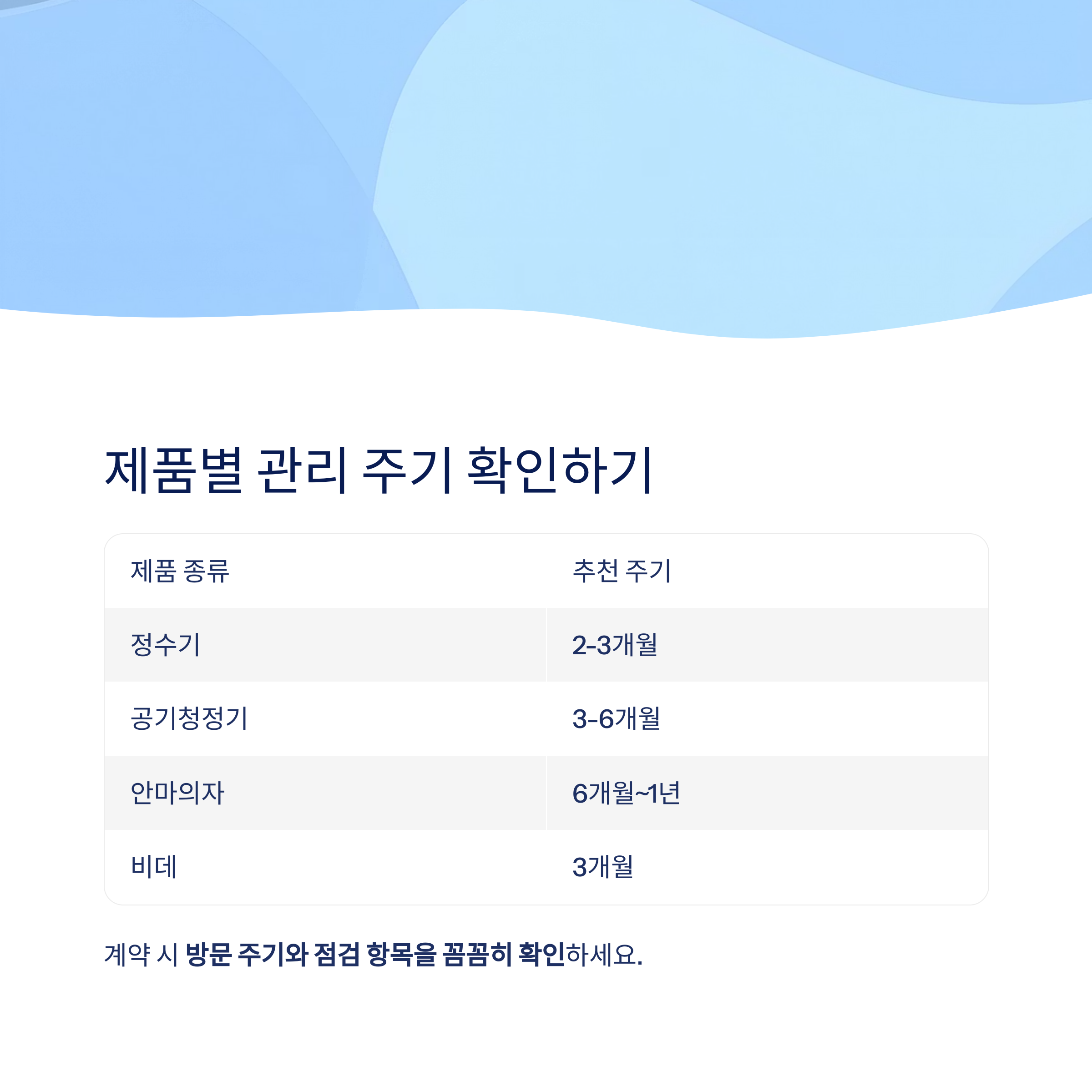 제품에 따라 필요한 관리 서비스의 주기와 내용은 달라집니다
