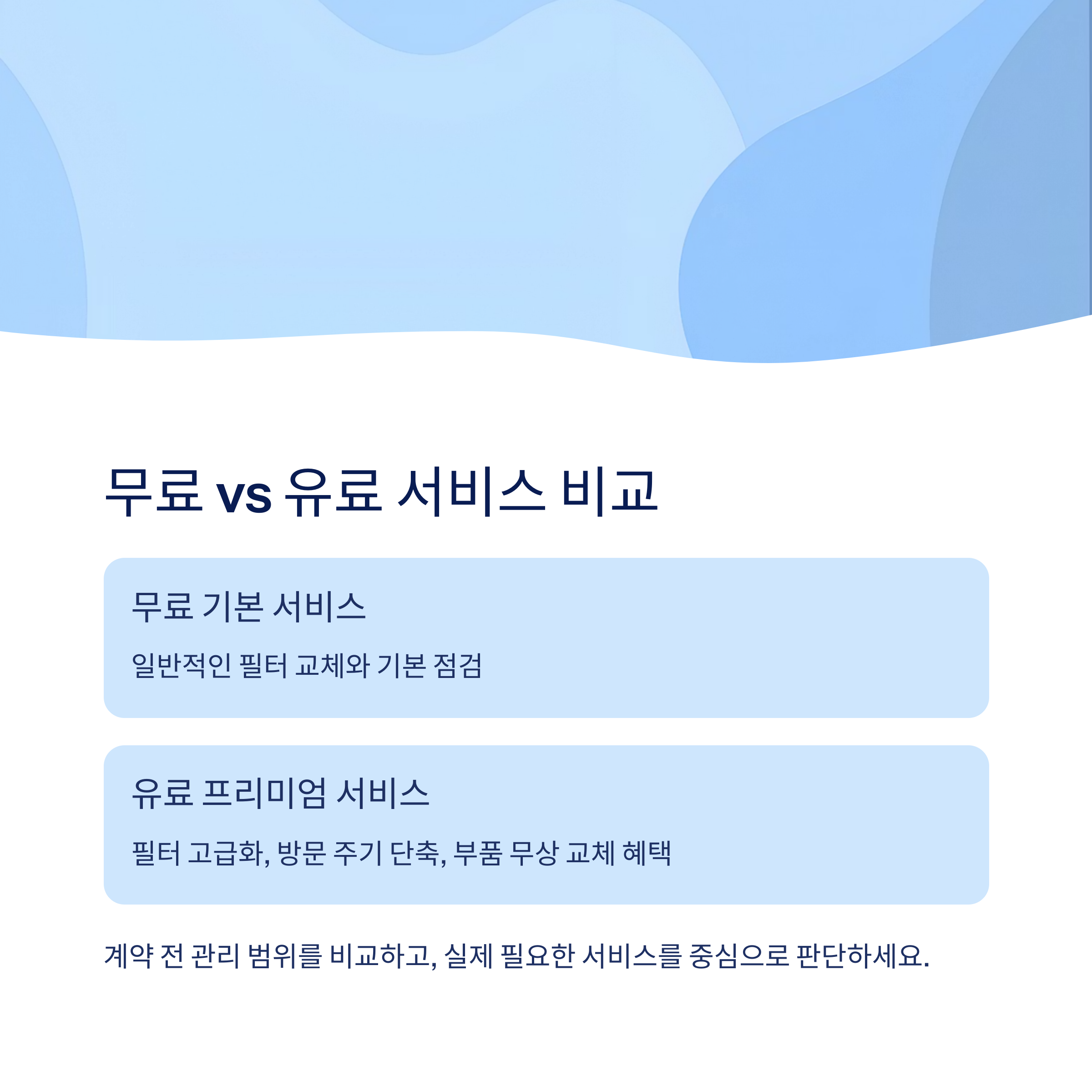 필터 고급화, 방문 주기 단축, 부품 무상 교체 등의 혜택이 유료 옵션에 포함될 수 있습니다
