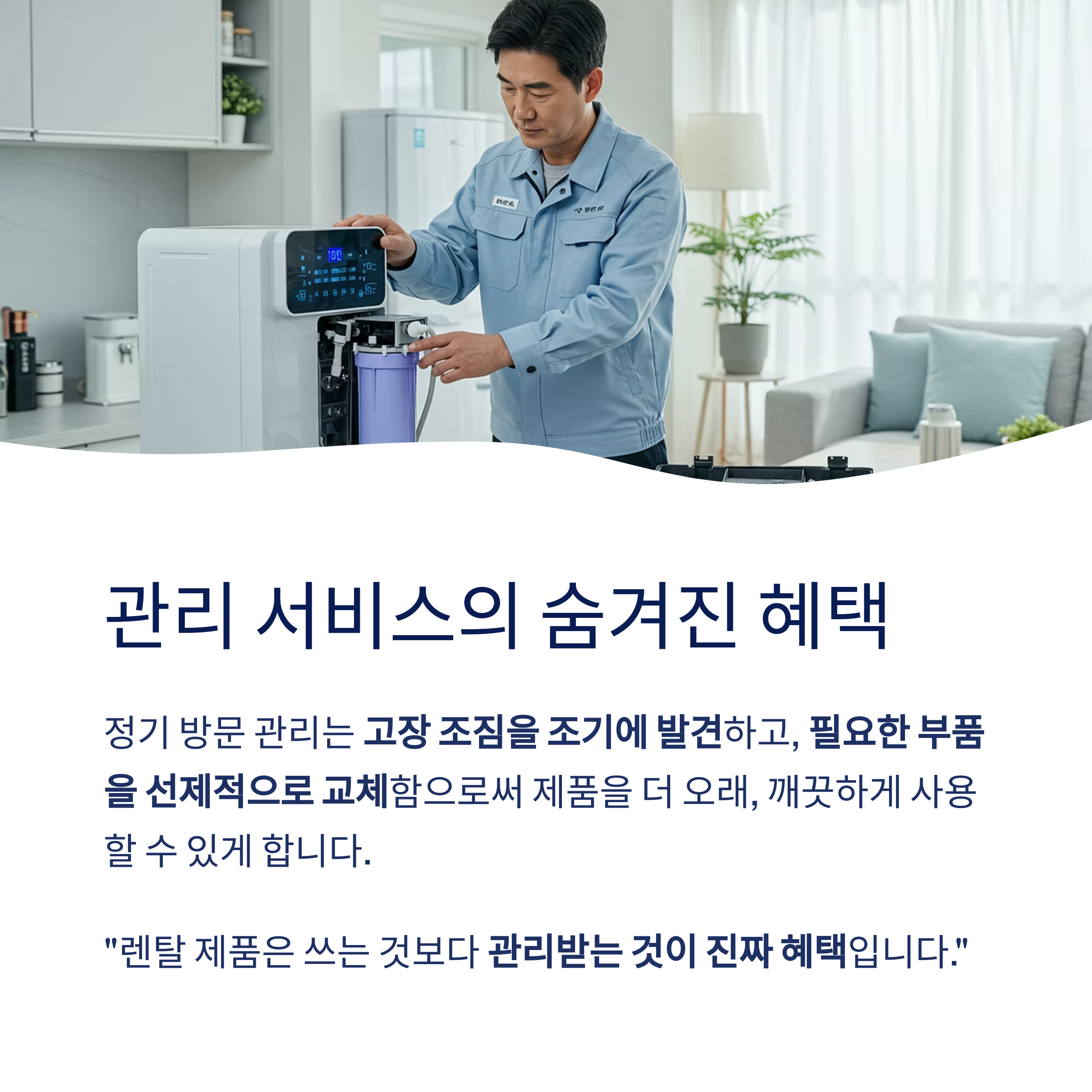 "렌탈 제품은 쓰는 것보다 관리받는 것이 진짜 혜택입니다"라는 말이 나올 정도로