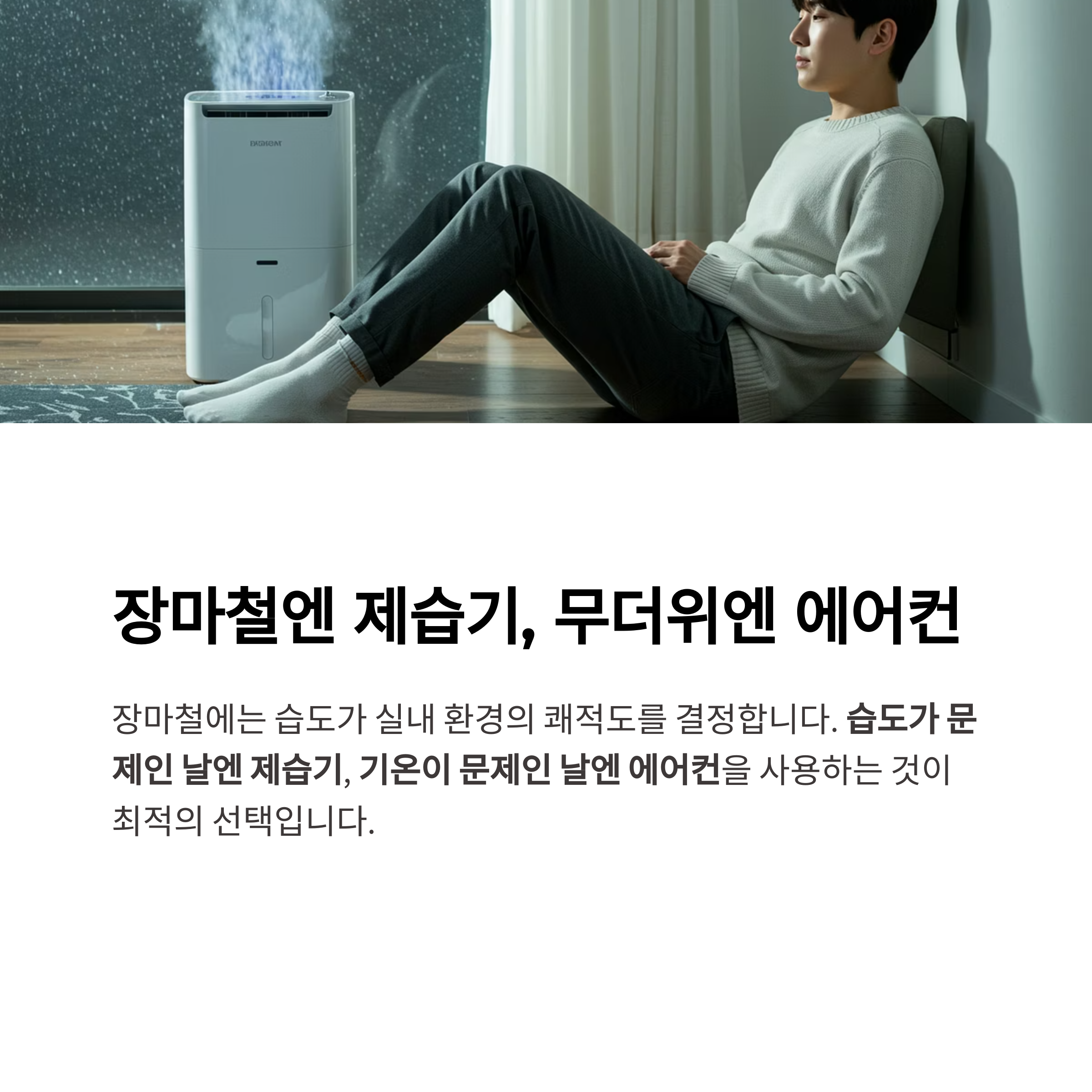 "그럴 땐 제습기 돌려. 공기도 뽀송하고 곰팡이도 막을 수 있어."