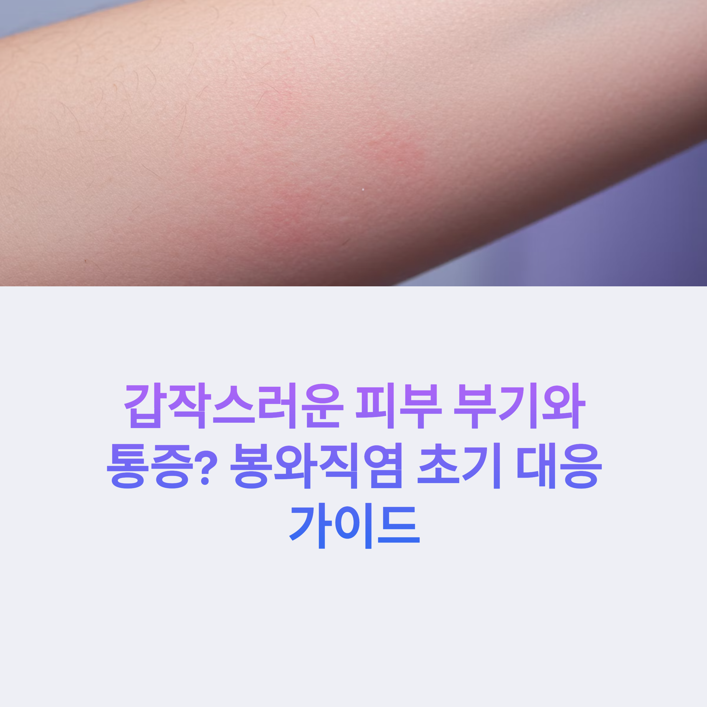 봉와직염의 주요 증상과 신속한 치료 방법은?봉와직염은 피부와 피하조직에 발생하는 급성 세균 감염으로, 빠른 대처가 생명을 지키는 핵심입니다.초기 증상을 알아차리고, 조기 치료에 들어간다면 합병증 없이 빠르게 회복할 수 있습니다.이 글에서는 봉와직염의 대표 증상과 반드시 알아야 할 응급 치료 정보를 정리합니다.급성 염증의 신호: 피부가 보내는 첫 번째 경고봉와직염은 "갑작스럽고 국소적인 통증, 열감, 발적, 부기"로 시작됩니다.대부분 한쪽 다리나 팔에 많이 발생하며, 손으로 눌렀을 때 통증이 심합니다.핵심 증상은 붉게 부은 피부와 열감이며, 경우에 따라 물집이나 고름이 생기기도 합니다.전신 증상으로 이어질 수 있는 위험 징후감염이 진행되면 단순 피부 증상을 넘어서 발열, 오한, 피로감이 동반됩니다.이 시기..